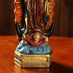 Una escultura devocional que honra a la patrona de México, símbolo de amor, protección y esperanza inquebrantable. Su figura inspira fe profunda y consuelo espiritual.
