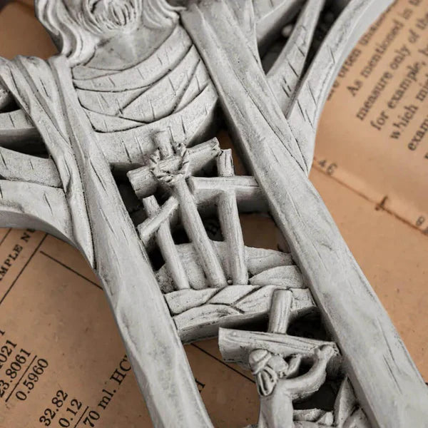 Hermosa cruz de resina con diseño exclusivo en relieve, que representa la resurrección y el triunfo divino sobre la muerte. Perfecta para decorar entradas, altares o cualquier espacio que necesite un toque espiritual y lleno de esperanza. Ideal para regalar o para tu hogar y lugar de trabajo.