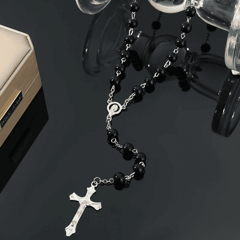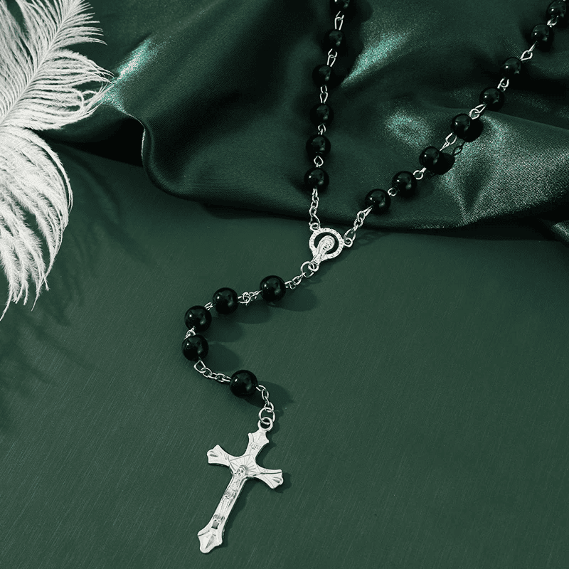 El Rosario Perlas de Fe Vintage aporta un aire de espiritualidad atemporal. Confeccionado a mano, combina perlas imitación, cuentas de vidrio y un crucifijo delicado, ideal para acompañar tus momentos de oración y reflexión.
